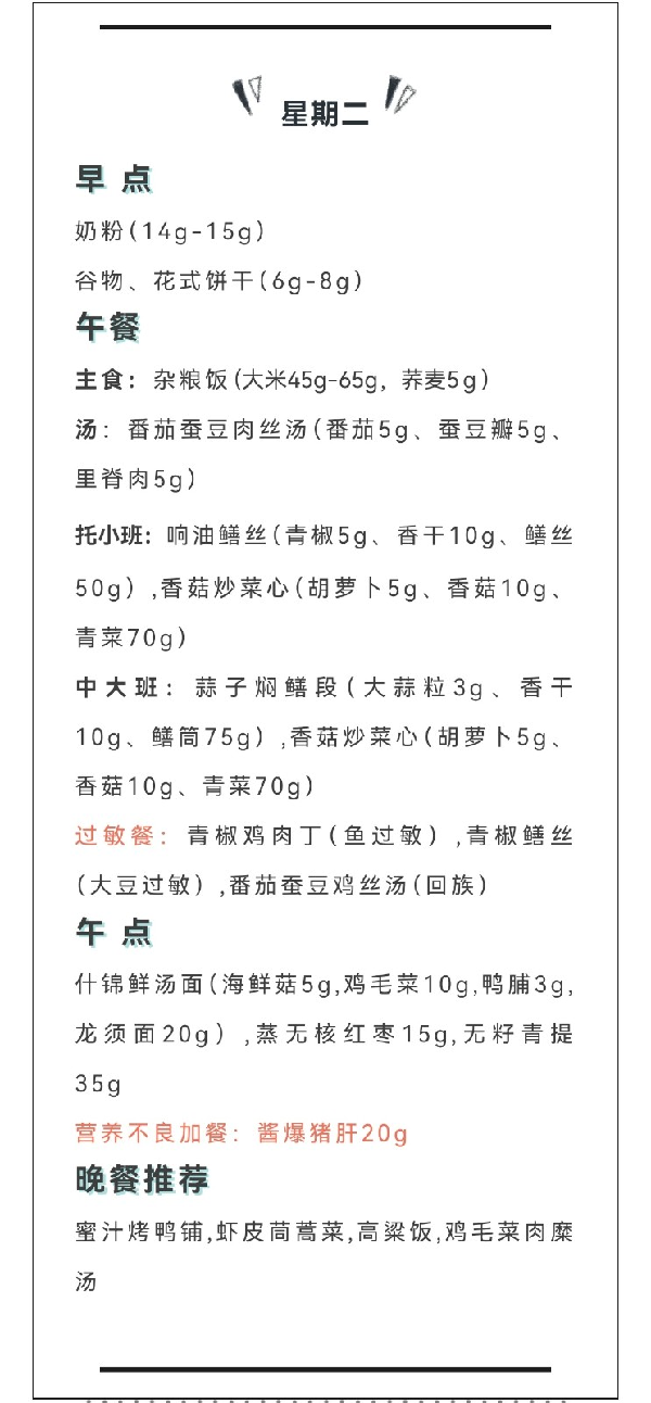 营养童心 健康同行——毓秀二幼每周菜谱(5.26—5.30)